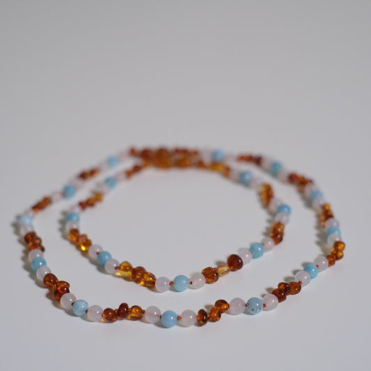 Ravsmykke cognac/akvamarin/hvit agat, barn