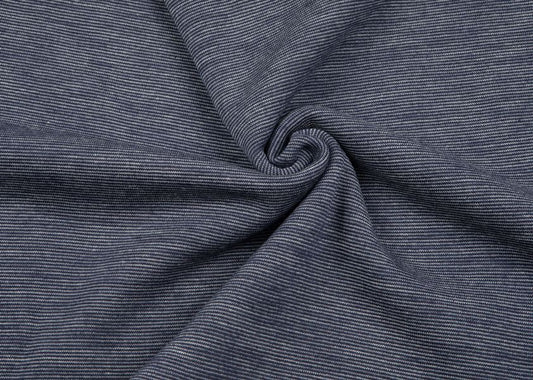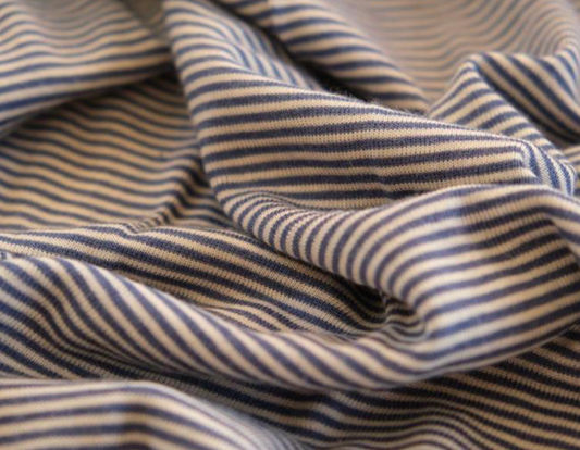Økol. ull-silke jersey, tynne striper blått/natur