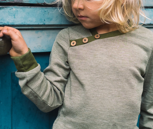 Zauberringel Olive/hvit Bio Ull-silke Jersey (kbT, mulesingfree)