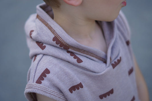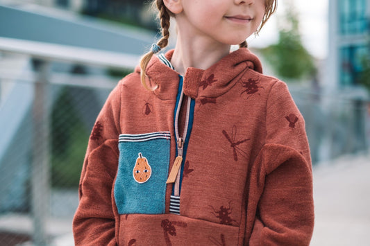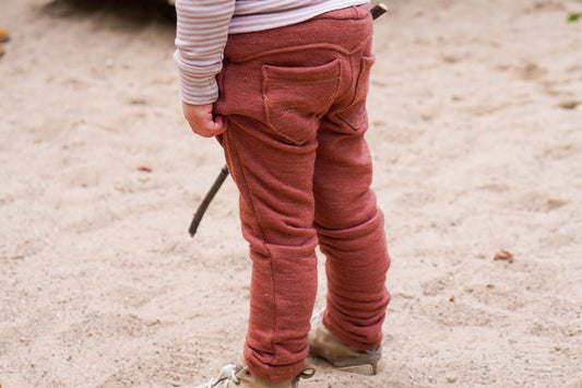 Biller på rustrød økologisk ull/silke frotté (organisk, mulesing-fri)