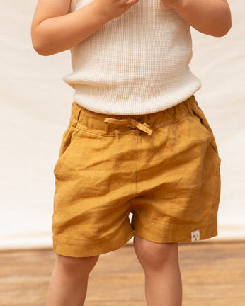 En av våre favoritt sommerklassikere. Arkie Shortsen er laget av utrolig mykt lin og har som alltid lommer med god plass til funn og barndomsskatter. Det justerbare, elastiske liv og det komfortable, brede snittet gjør shortsen til en herlig basic for jenter og gutter.