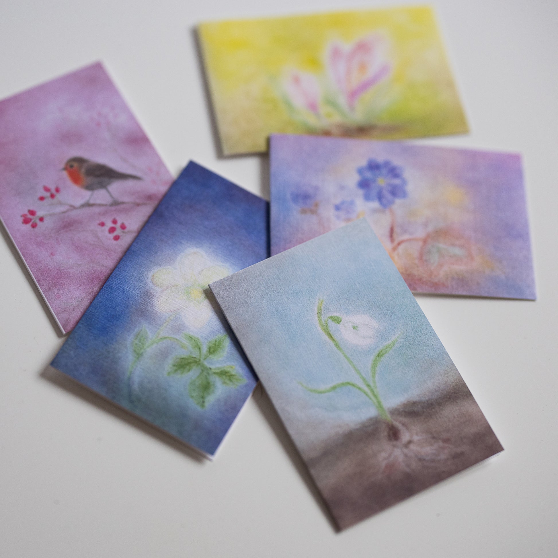 Mini blomsterkort sett med 5stk.